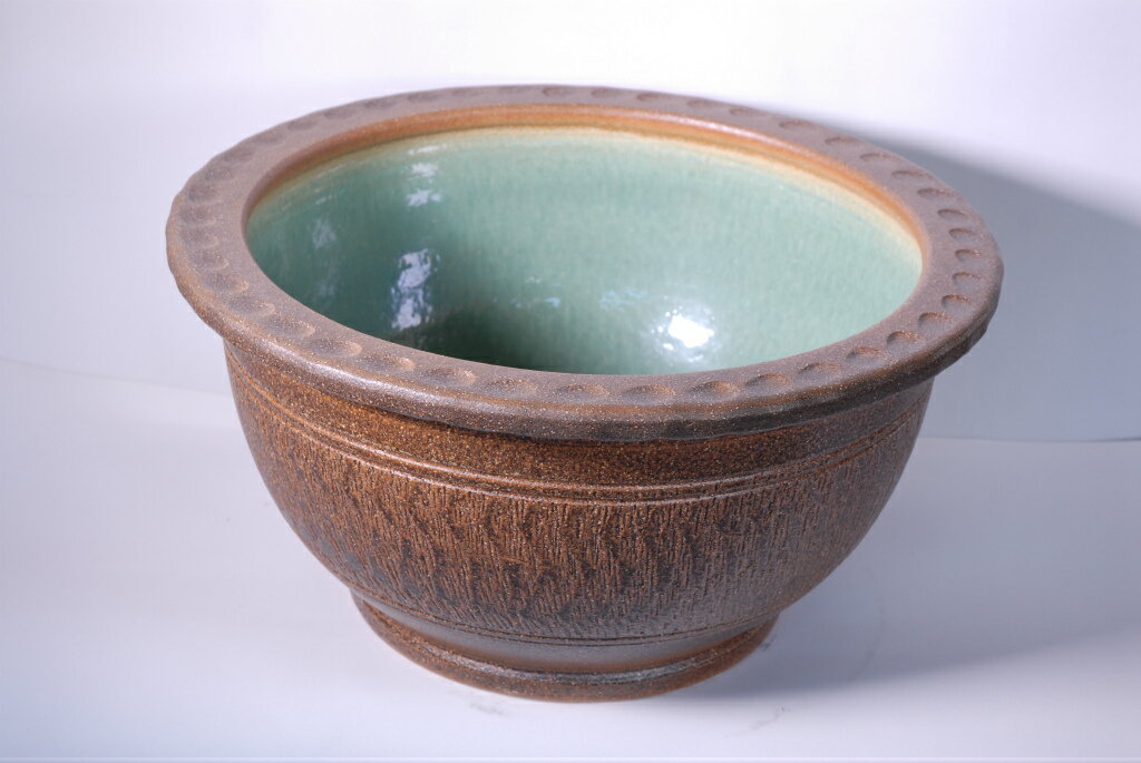 信楽焼き陶器の水鉢です。