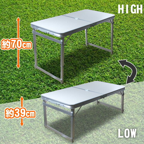 商品詳細 商品仕様 テーブルサイズ : (約)幅:120cm×奥行:60cm×高さ:70cm/40cm ベンチサイズ : (約)幅:30cm×奥行:30cm×高さ:38cm 折りたたみ時 : (約)幅60cm×奥行7cm×高さ60cm パラソル用ホール直径 : (約)2.6cm 素材:天板/メラミン加工 MDF耐熱耐水板 座面/MDF耐熱耐水板 フレーム/主素材アルミ 重量 (約)9.6kg 耐荷重 テーブル : 120kg ベンチ : 120kg 【2WAYで使える 高さ調節機能】 4人がけのテーブルセットとしてだけでなく、継脚を外しせば、ローテーブルとしても使う事ができます。
